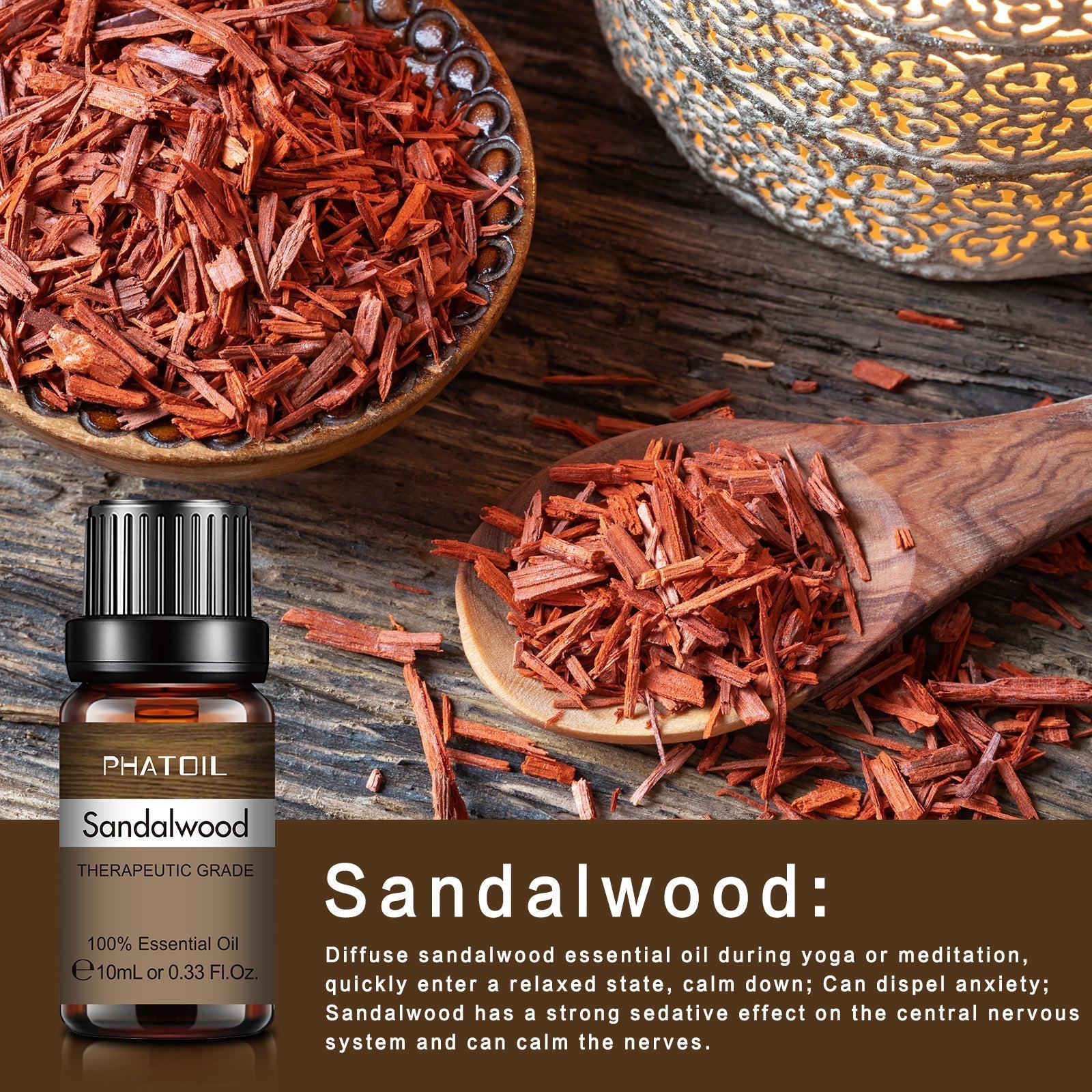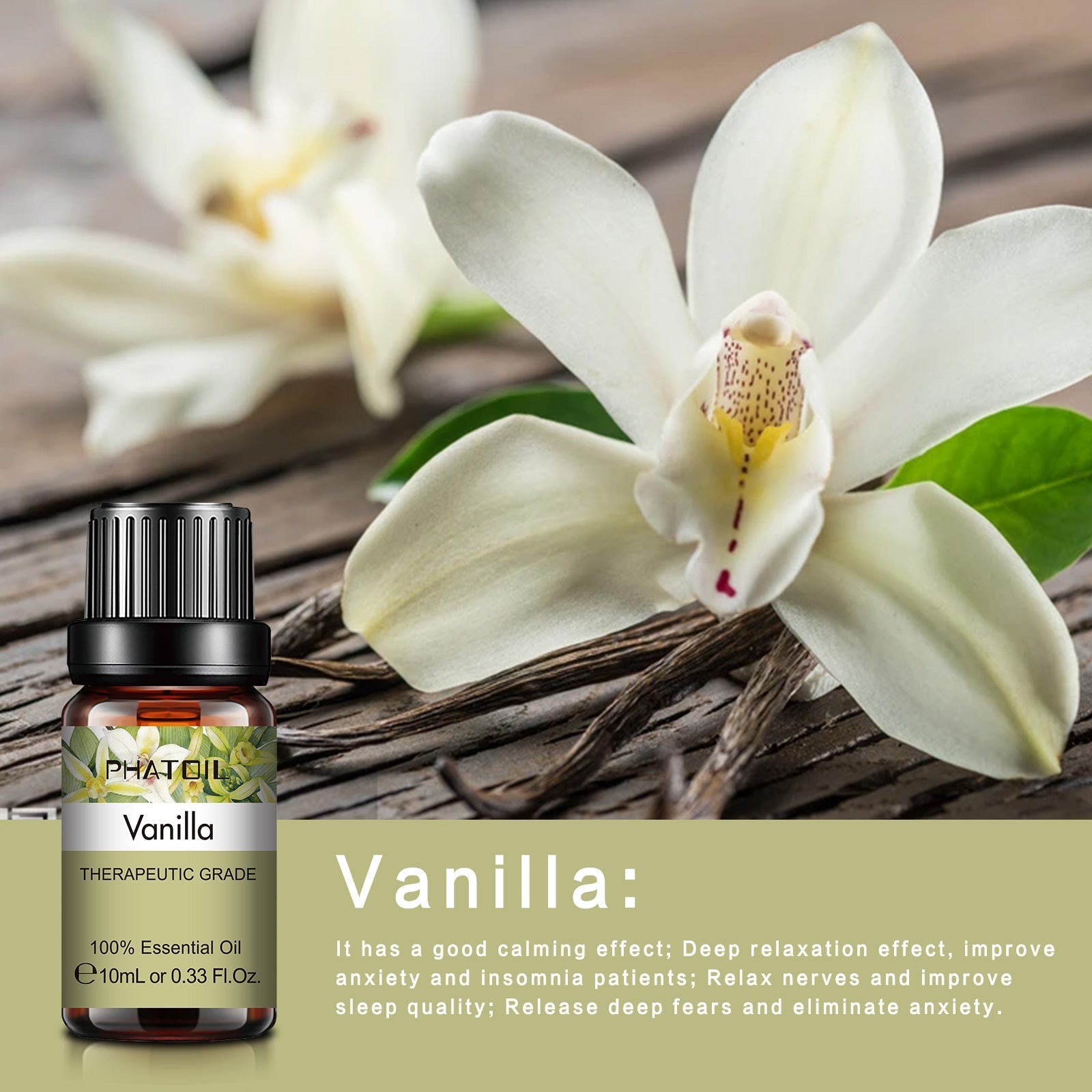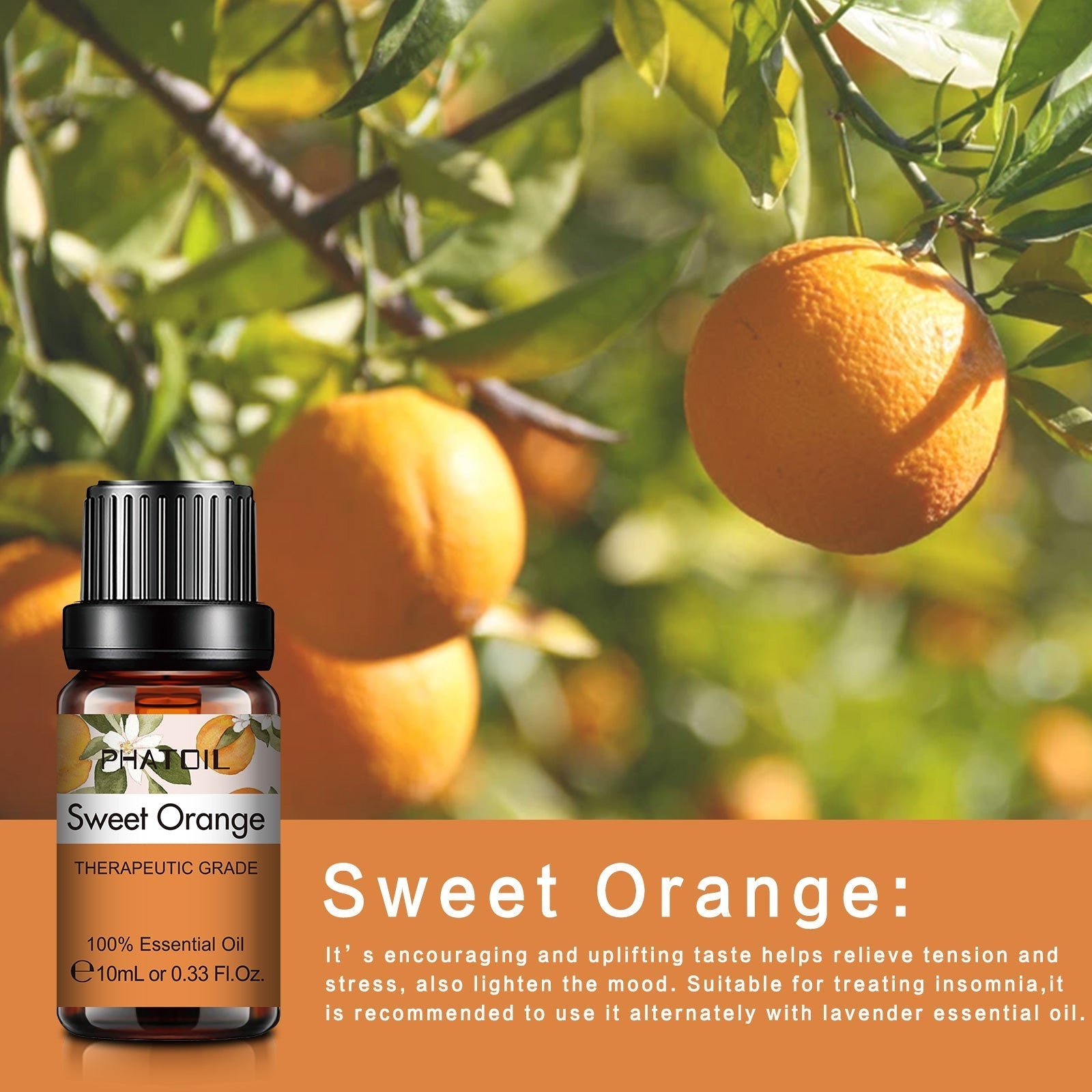 This 10 pcs x 10ml essential oils set includes Lavender, Ylang Ylang, Eucalyptus, Tea Tree, Peppermint, Bergamot, Vanilla, Lemongrass, Sandalwood, and Sweet Orange—ten popular essential oil scents to meet your different needs.