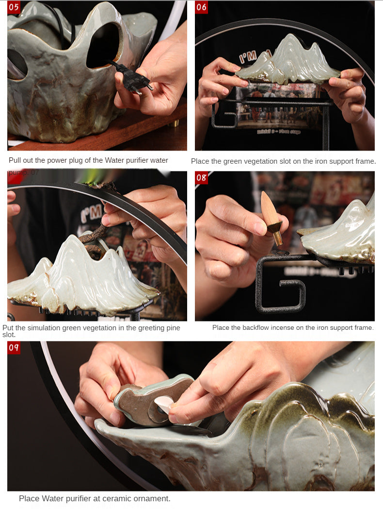 You can use this incense burner backflow in the living room, bedroom, study, office, meditation room, yoga room, etc. When the guest visit, it can create a comfortable atmosphere, purify the air, reduce mental depression, and more.