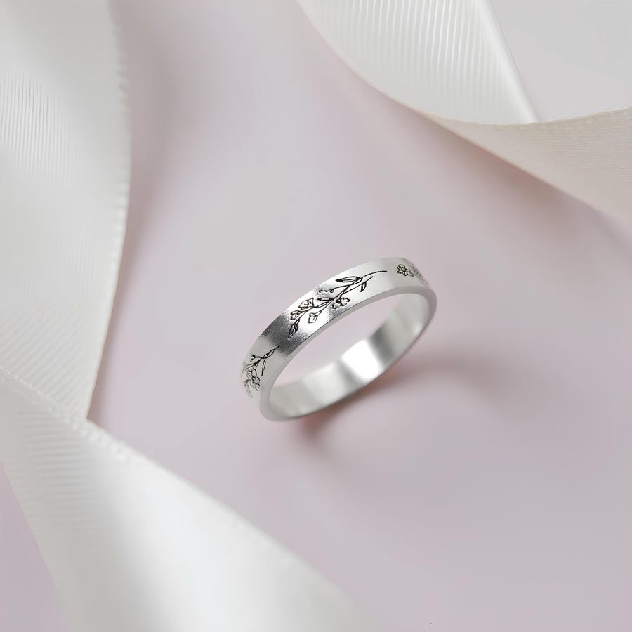 Personalized Birth Flower Ring – Engraved Stainless Steel Family Keepsake