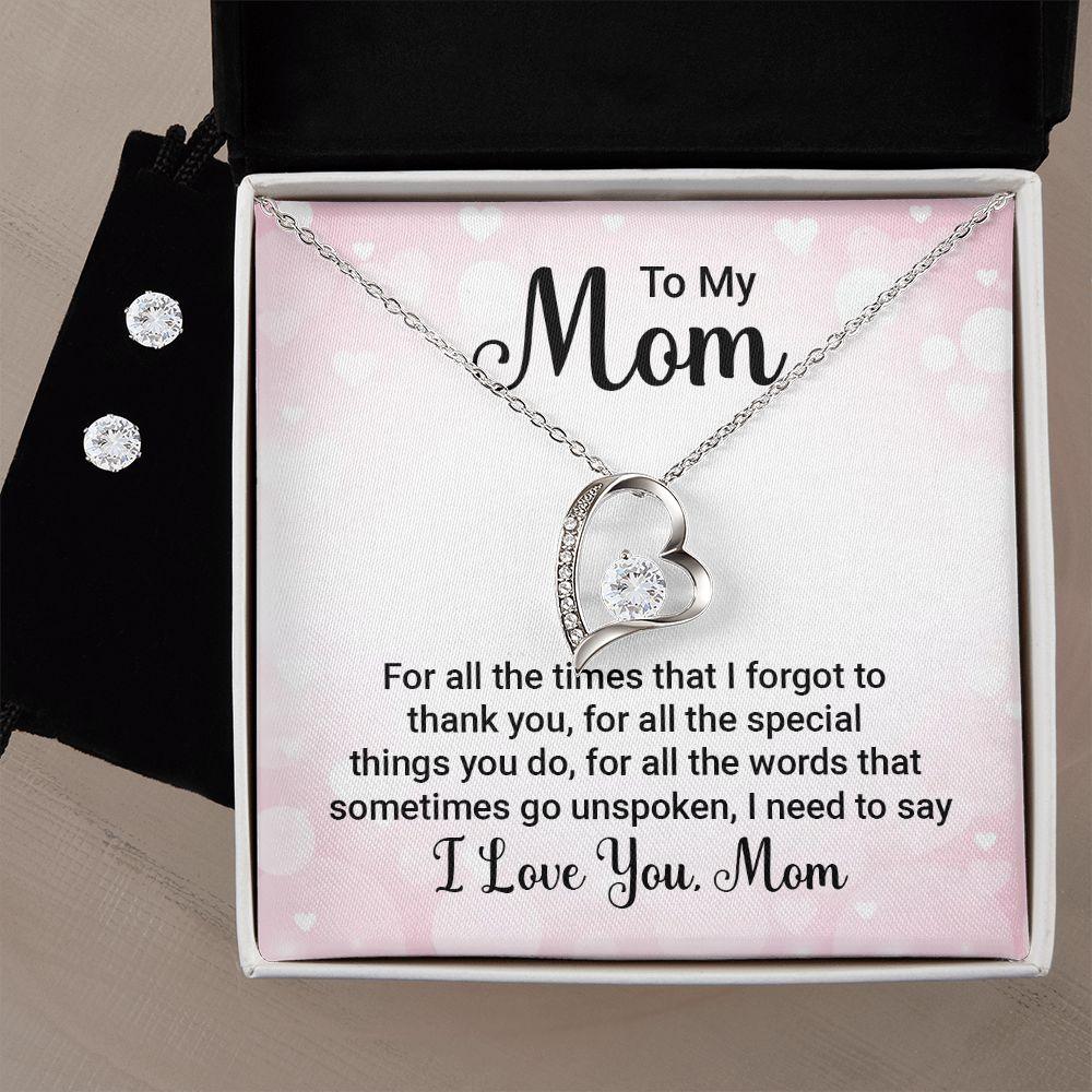 To My Mom Forever Love Heart Pendant Necklace and Earring Set